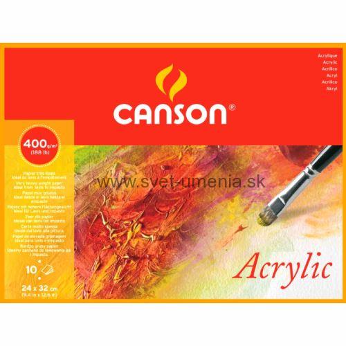 Canson Acrylic je silný papier za studena lisovaný, s vysokou gramážou (400g / m2), pevný a savý. Je ideálny pre prácu so zriedenou akrylovou farbou, aby sa dosiahlo omývacího účinku alebo niekoľkých vrstiev. Papier je bez ACIDov, má vynikajúcu životnosť a je prirodzene biely.