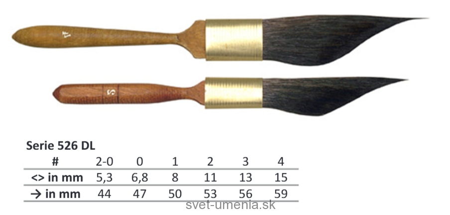 - Mečovitý štetec KOLIBRI (séria 526) na maliarské písmo, prírodné veveričie štetiny, krátka rukoväť