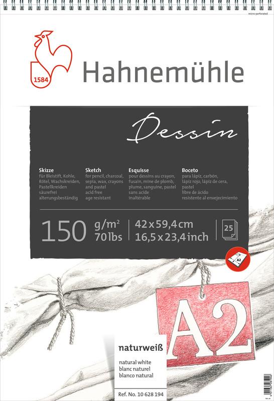 Skicár A2 na kreslenie Dessin Hahnemuhle, krúžková väzba, 150g/m2, 25 listov