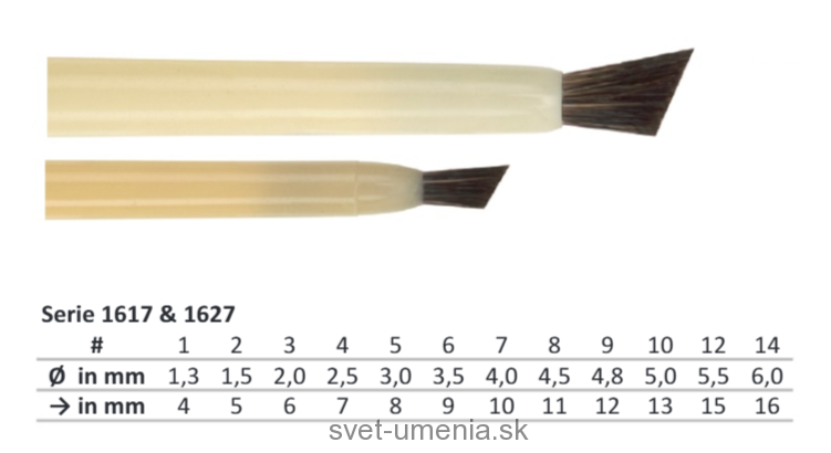 Štetce KOLIBRI na keramiku a porcelán (séria 1617), prírodné štetiny z ruského tchora, krátka rukoväťSkladom 2 ks5,50 EUR/ ks4,47 EUR bez DPH