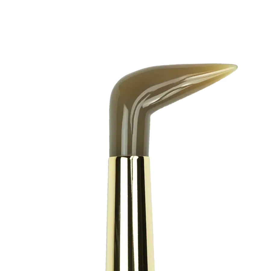 Achát je hladký tvarovaný kameň, ktorý sa používa na uhladzovanie zlatých plátov alebo vločiek. Kameň je osadený v drevenej rukoväti.