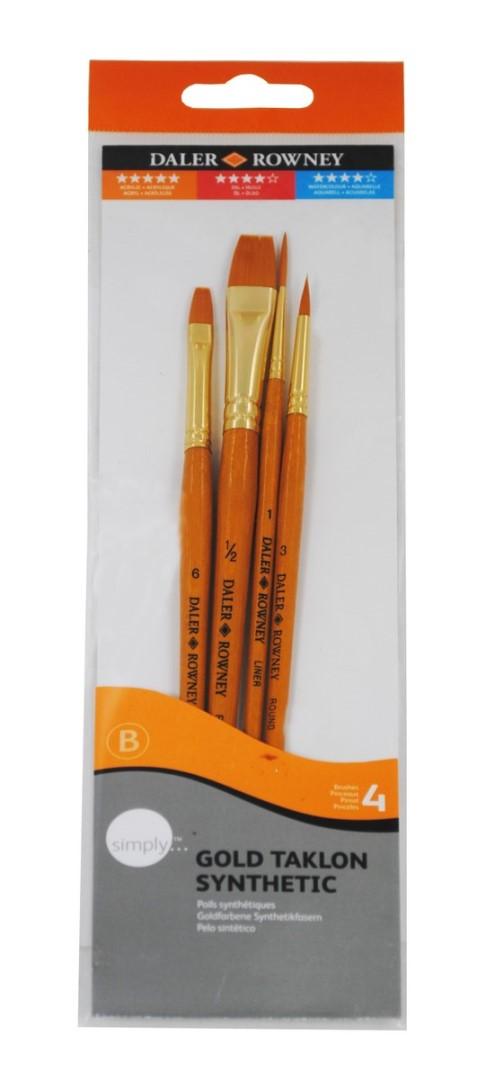Sada 4 štetcov na akryl Daler-Rowney, krátka rukoväť, zlatý talkon