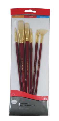 Sada 6 štetcov na olej Daler-Rowney, dlhá rukoväť, prasačie štetiny