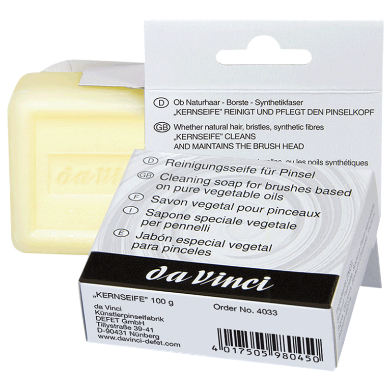 Toto špeciálne mydlo svojím regeneračným účinkom čistí a udržiava tvar štetca, udržiava prírodné aj syntetické štetiny pružné a hladké. Pomocou vody a tohto rastlinného mydla umyjete farby, ktoré sú vodou rozpustné, ale aj nezaschnuté akrylové farby.