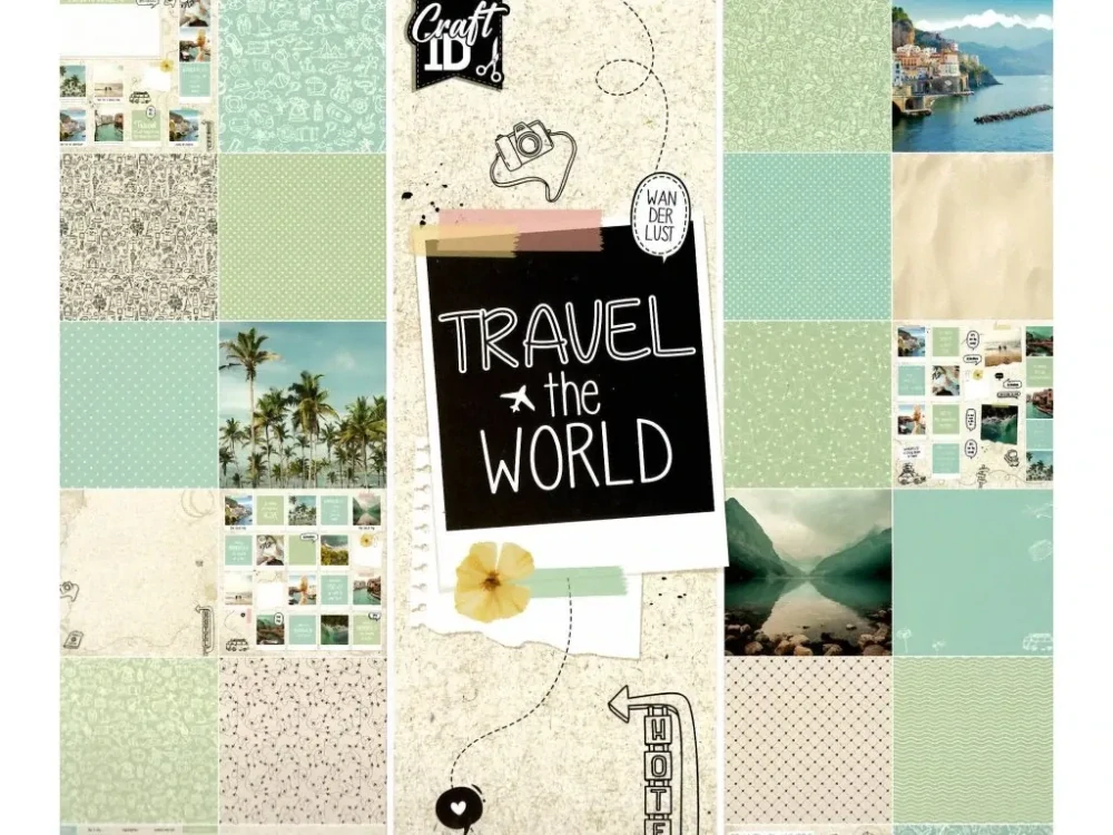 Dekoračný papier 25x25cm, 250g - Cestovanie, 24 listov