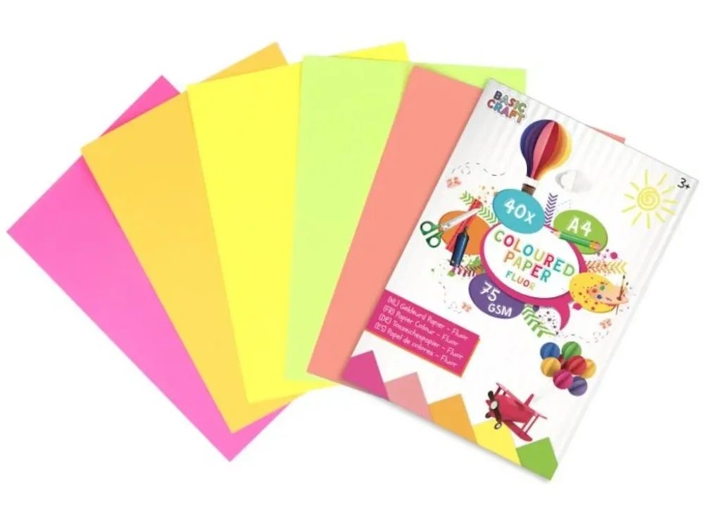 Farebný papier A4 - mix neónových farieb, 75g/m2 - 40 listov