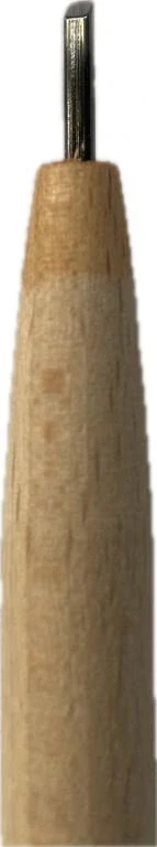 Pevná oceľová grafická ihla so špeciálne nakloneným hrotom na 2 protiľahlých stranách. RGMIhla je vložená do takmer 20 cm dlhej drevenej rukoväte talianskej značky .