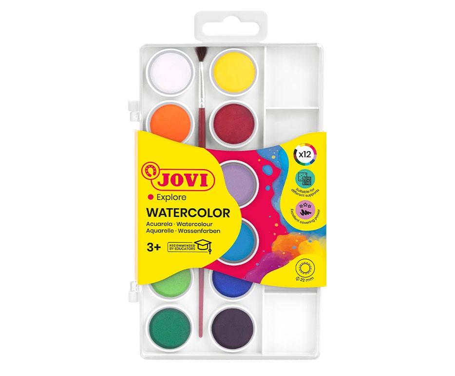 Vodové farby JOVI pre deti - priemer 22mm, 12ks