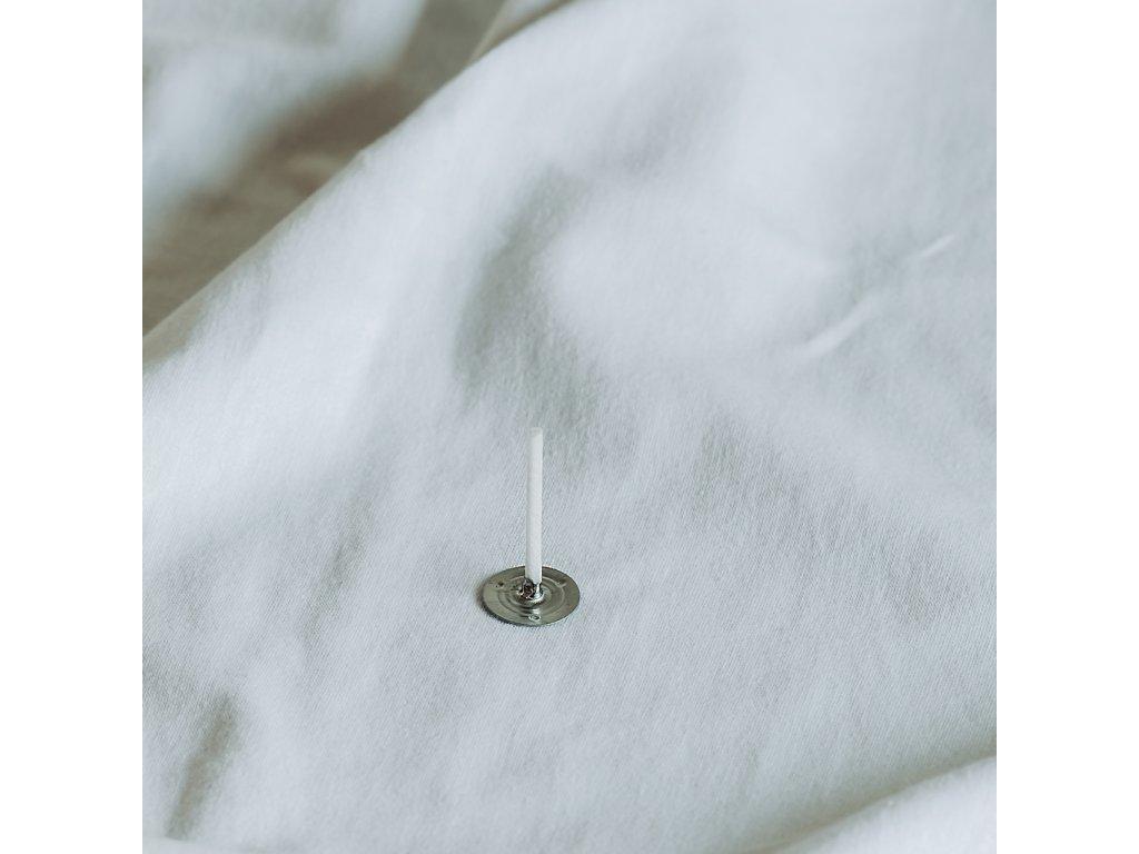 Knôt s plieškom výrobu čajovej sviečky. Knôt je povoskovaný a zospodu zabezpečený plieškom.