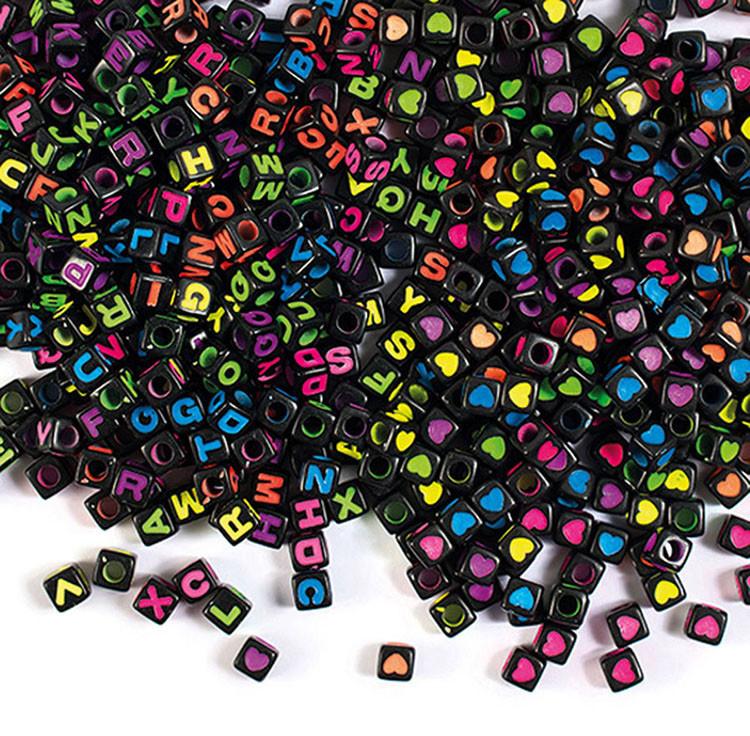 - Korálky neódové dva druhy - písmená a srdiečka, 2x300g