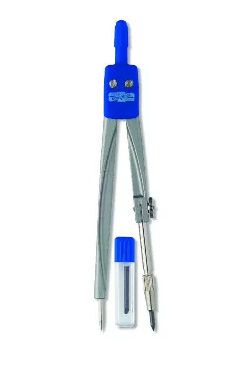 Školské kovové kružidlo v plastovom obale s náhradnou tuhou v plastovom obale. Vhodné na rysovanie kružníc s priemerom 5 - 125mm. Dĺžka kružidla 122mm.