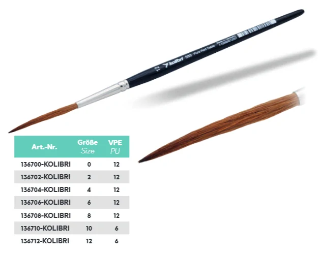 - Linkovací štetec KOLIBRI (séria 588), prírodné štetiny z kuny, krátka rukoväť