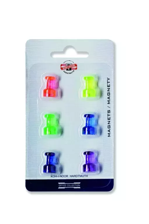 Sada 6ks magnetov v tvare okrúhlej pečiatky, na konci ktorej je magnet. Priemer 8mm, výška 18mm.