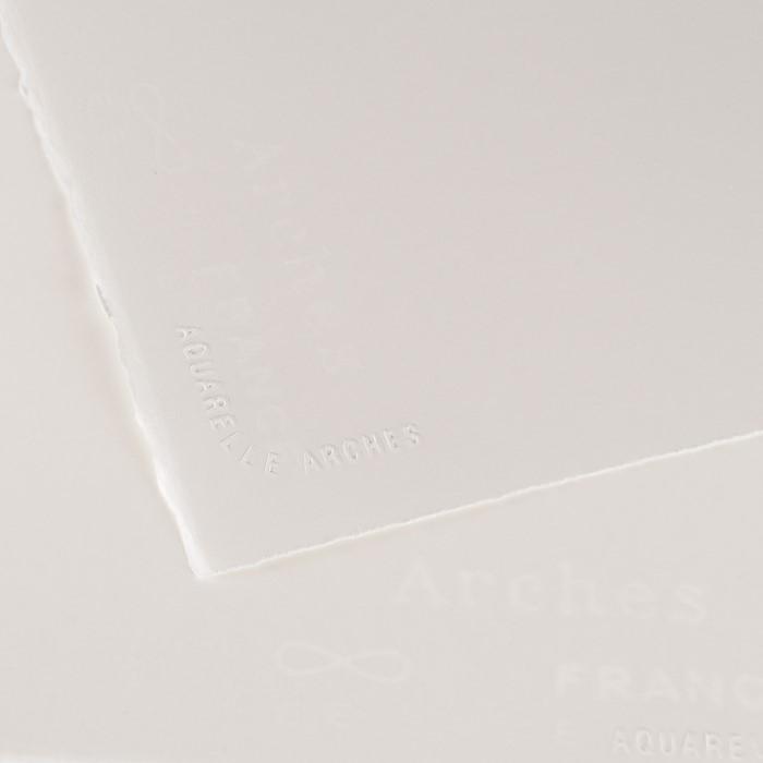 100% bavlnené vlákno dodáva papieru prirodzenú trvalú belosť, nenapodobiteľný dotyk ako aj pevnosť. Exkluzívne pre ARCHES®, želatínové glejenie až po jadro zachováva lesk a transparentnosť farieb a zároveň zabraňuje prenikaniu farieb do papiera. Umožňuje prekrývanie jednotlivých vrstiev a zabraňuje rozmazávaniu a tvoreniu žmolkou. Umožňuje tiež odtránenie farieb za mokra alebo za sucha. Tým sa ľahko odhalí belosť papiera. ARCHES® Aquarelle dokáže absorbovať veľké množstvo vody s obmedzenou deformáciou. Dimenzovaný až do jadra prírodnou želatínou: proces exkluzívny pre ARCHES®. ARCHES® je jedinou papierňou na svete, ktorá želatínuje svoj akvarelový papier až po jadro. Aj keď je dlho namočený, papier si stále zachová dostatok želatíny, aby nebol príliš savý.