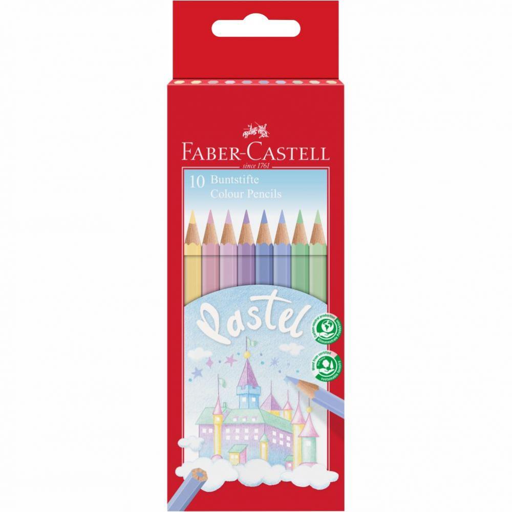 Šesťhranné pastelky Castell, 10 pastelových farieb v papierovej krabičke. Kvalitné drevo zaručuje ľahké strúhanie.