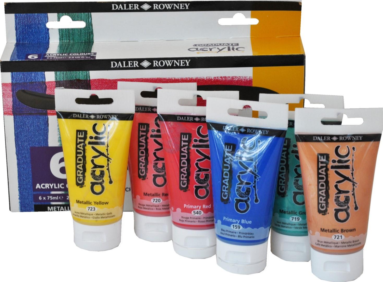 - Sada 6x75ml Graduate metalických akrylových farieb Daler-Rowney