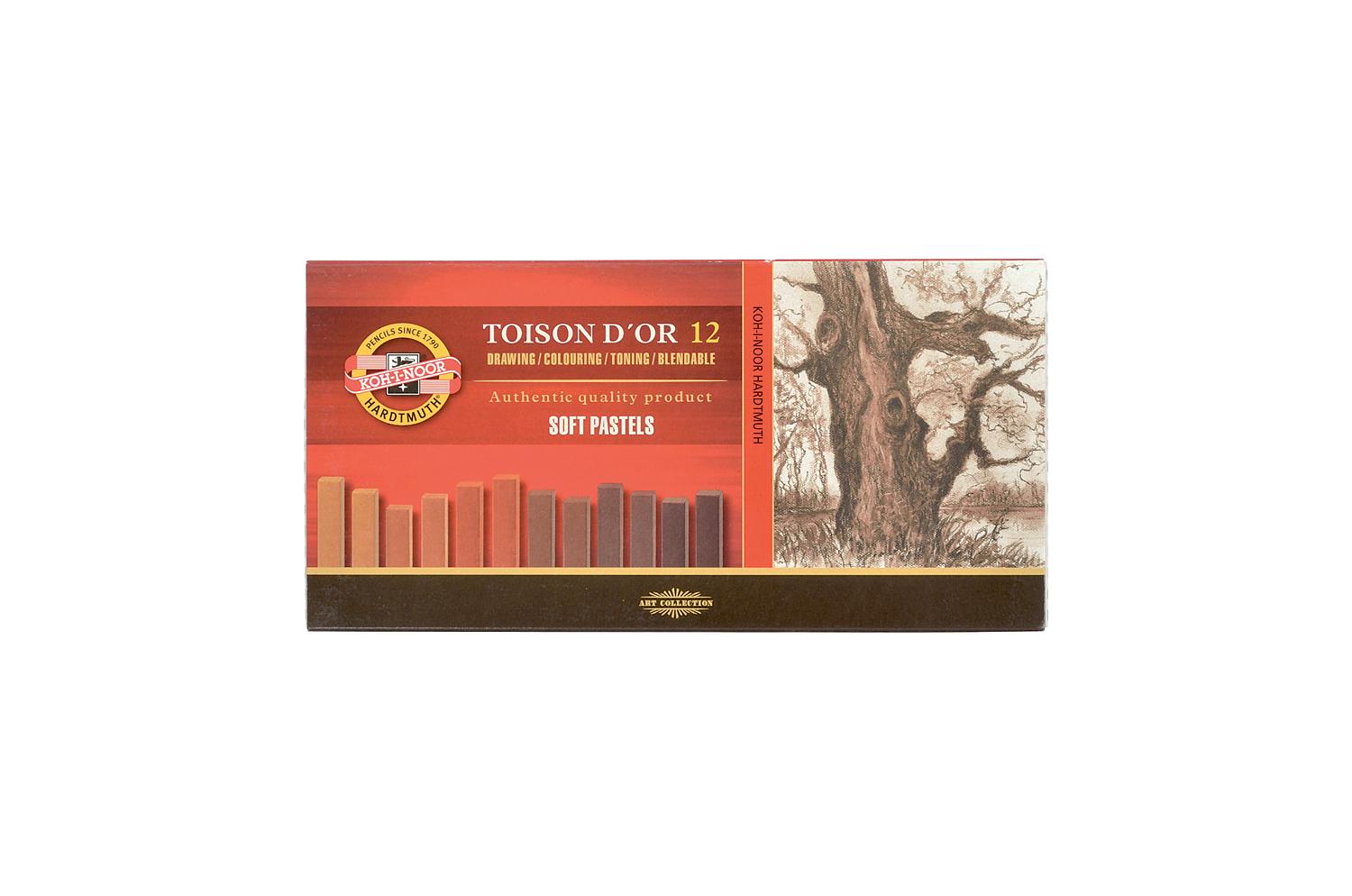 Sada 12 umeleckých hranatých suchých pastelov TOISON D´OR KOH-I-NOOR - odtiene hnedejSkladom 6 ks9,90 EUR/ ks8,05 EUR bez DPH