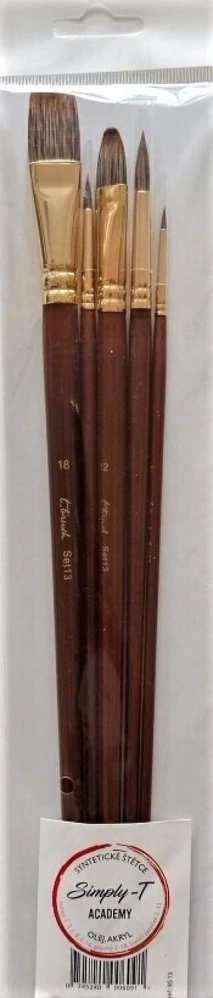 Sada 5 štetcov t_brush na olej a akryl s dlhou rukoväťouSkladom 1 ks10,50 EUR/ ks8,54 EUR bez DPH