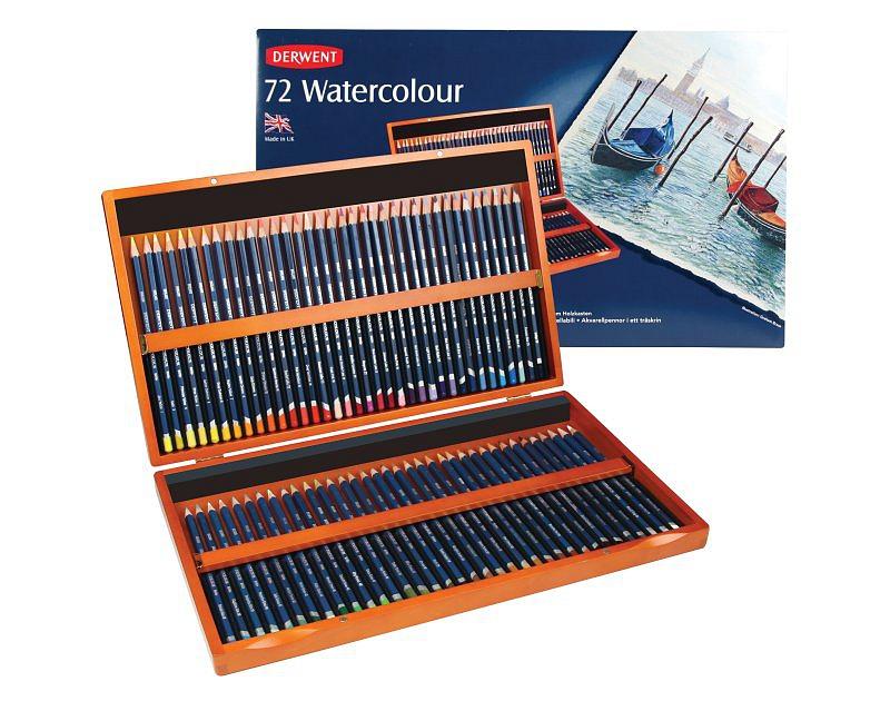 Sada 72 akvarelových ceruziek DERWENT, drevený box
