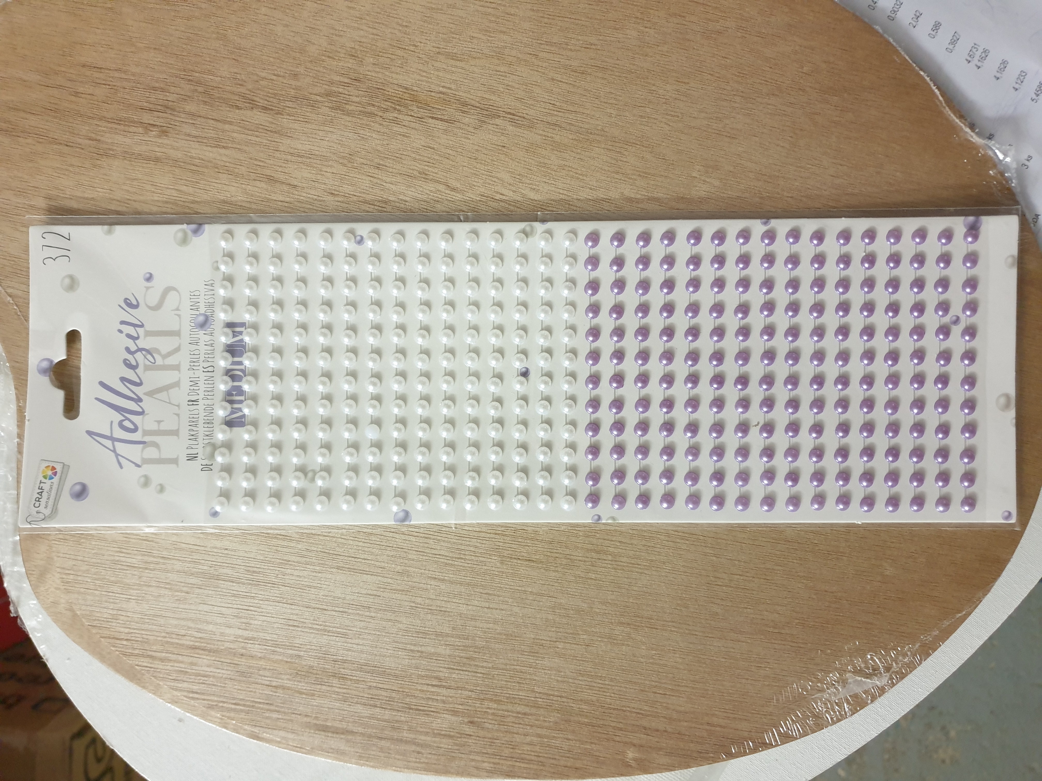 Perly sú nalepené na prúžku, obsah balenia je 372ks. Rozmery balenia 20x32,5cm.