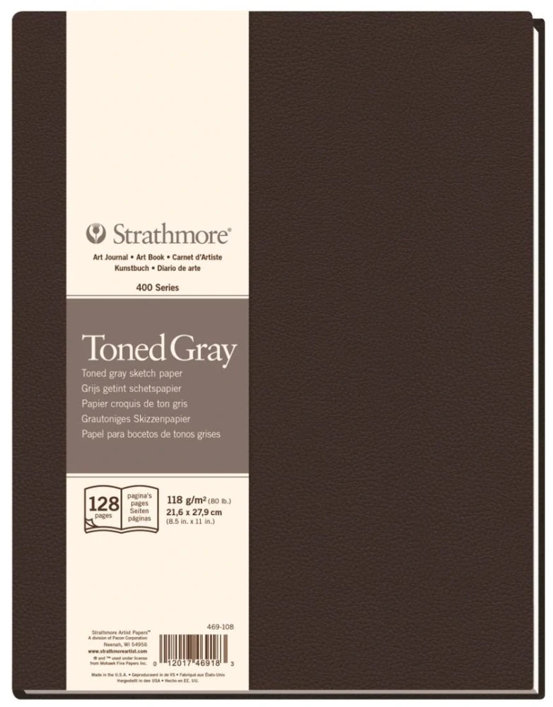 Skicár 21,6 x 27,9 cm Strathmore v pevnej väzbe na kresbu - šedý papier, knižná väzba, 118g/m2, 64 listov