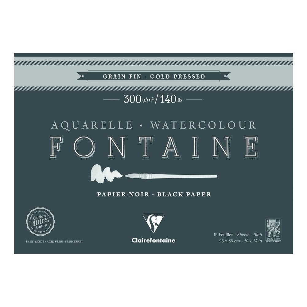 Skicár 26 x 36cm Fontaine na akvarel CLAIREFONTAINE - čierne listy, cold press, lepená väzba, 300g/m2, 15 listov