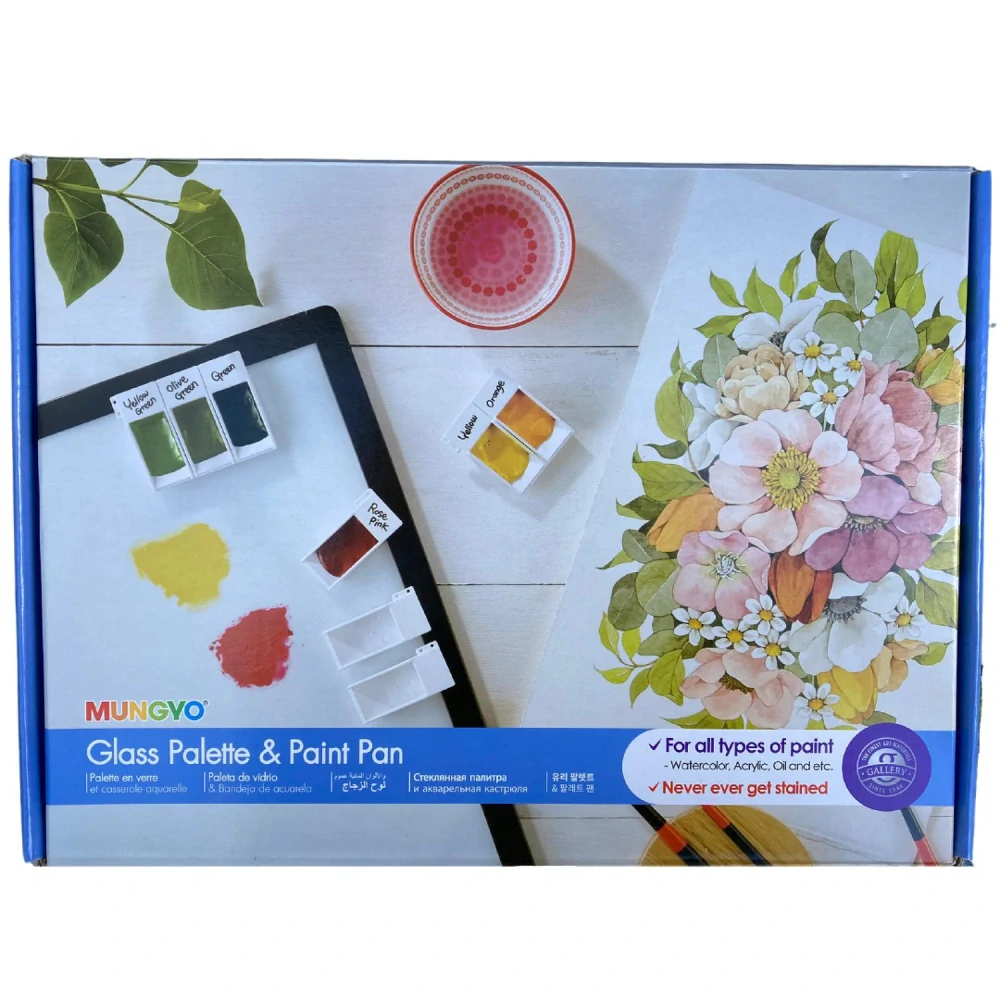 Sklenená paleta, ktorá sa nikdy neušpiní. Stopy po farbách sa dajú jednoducho odstrániť. Najlepšia je táto paleta pre akvarelové a akrylové farby. Akryl ide z palety po uschnutí ľahko zlúpnuť. Magnetické kalíšky sa dajú popísať, skvele držia.
