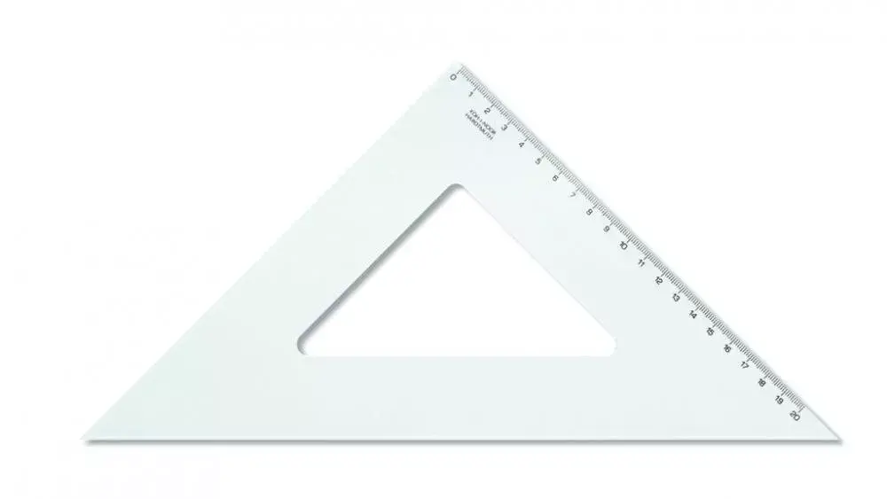 Trojuholník 45/226 je vyrobený z číreho priehľadného polystyrénu. Tlač stupnice je odolná voči opotrebovaniu pri bežnom používaní. Vhodný je na rysovanie priamok, kolmíc a pod. v školách a kanceláriách.
