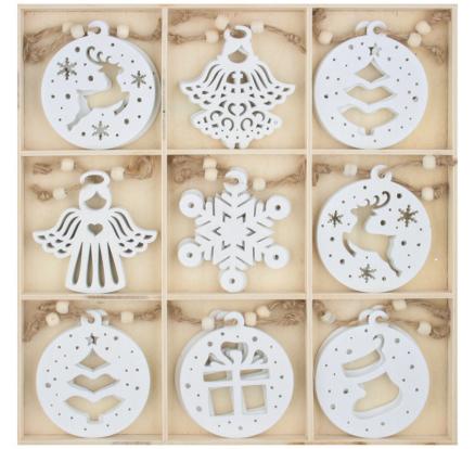 Vianočné drevené dekorácie na zavesenie, 27ks
